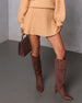 Fun, flirty, and undeniably fall-ready the Aura Pleated Knit Mini Skirt is the piece you need to tie your look together. The soft pleated knit fabric catches the light with every move, while the elastic waistband ensures all-day comfort and a flattering fit. Designed to pair beautifully with the matching Aura Ribbed Sleeve Crew Neck Sweater (sold separately), this skirt is your go-to for elevated casual vibes that flow from day to night.