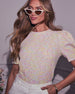 Say hello to spring in style with the Bethany Knit Puff Sleeve Top! Made from soft knit jersey fabric with playful multicolor stitch details, this top radiates charm and personality. Whether you're heading to a garden party or a sunny brunch, Bethany pairs beautifully with everything from flowy skirts to tailored trousers. Lightweight, versatile, and effortlessly stylish, it’s the ideal choice for those fresh spring days.
