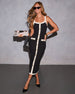 Embrace the season in style with the Autumn Colorblock Midi Dress. Crafted from midweight lightly ribbed jersey fabric, this dress is as comfortable as it is stylish. With etched gold-tone button accents at front and faux slip pockets at the side, this look gives you the sophistication you’re looking for without the hassle. Whether you're heading to a casual brunch or an evening event, this dress promises to turn heads and keep you feeling fabulous all day long.