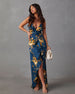 Meet your new go-to for those moments when you want to feel effortlessly chic: the Capriccio Satin Floral Ruffle Maxi Dress. Crafted from luxurious satin fabric and cascading ruffle detail adds a touch of whimsy and movement, making every step you take a graceful one. Perfect for a sunlit brunch, a romantic date night, or an elegant garden party, this maxi dress is all about celebrating life’s beautiful moments.
