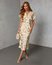 Imagine walking through a watercolor painting, but make it wearable, that’s the energy the Charla Printed Lace Trim Satin Midi Dress brings to your wardrobe. With its fluid satin fabric and soft floral print, this midi radiates romantic boho with a polished edge. The lace-trimmed neckline gives a delicate nod to vintage charm, while the open back with a tie closure keeps things unexpected and fresh. The rigid, non-stretch silhouette holds its shape beautifully, making every step feel like a moment.