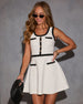 Timeless sophistication meets playful charm in the Classic Allure Contrast Mini Dress. Made from soft crepe jersey fabric, it’s as comfortable as it is chic. The striking contrast trim adds a refined edge, while faux button accents bring a hint of vintage-inspired flair. Functional front slip pockets keep it effortlessly cool and practical, making this mini perfect for your busiest days and most stylish nights.
