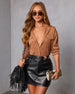 Meet the Cobian Suede Button Down Top, your new fall obsession that blends sleek sophistication with relaxed cool. The smooth suede fabric and classic collared neckline elevate your everyday look, while faux breast flap pockets and front buttons add subtle edge. Notched side seams and a curved shirttail hem create a flattering silhouette that flows perfectly whether tucked in or left out. Pair it with the matching Cobian Pleated Suede Mini Skort for effortless fall vibes.