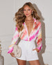 The Crushed Citrus Button Down Top is your wearable daydream. Designed in glossy satin with a watercolor ombré that fades like a citrus-tinged sunset, this top brings serious endless summer energy. The collared neckline and concealed front buttons keep the vibe polished, while the fluid fit gives you room to move, sway, and soak up every golden hour.