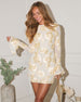 Pure summer soirée magic can be found right here with the Dreamy Dunes Mesh Floral Mini Dress. With a sheer mesh overlay and contrast embroidered florals, this dress brings soft romance with a modern edge. The back features a flirty keyhole and cut-out detail with a delicate loop button closure, adding just the right touch of allure. Finished with airy bell cuffs and a breezy silhouette, it’s the perfect piece for twirling through golden hour or sipping cocktails under string lights.