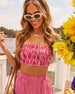 Safe to say, the Dune Drifter Smocked Shoulder Tie Crop Top will be your new summer staple. This breezy beauty pairs classic stripes with playful smocking for a fit that feels made just for you. Adjustable shoulder ties let you tailor the look from sweet to sultry, while the attached front tie closure adds a flirty finish. Pair it with the matching Dune Drifter Contrast Stripe Shorts or layer under the Button Down Top for endless nautical-inspired styling.