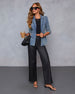 The Fall Right In Denim Blazer is your instant outfit elevator, sharp, sleek, and made to turn everyday plans into main character moments. Designed in stretch denim for a structured-meets-comfort fit, it features padded shoulders for a touch of polish and dual front button closures for that tailored edge. Front flap pockets and a faux breast slip pocket keep the look classic, while buttoned cuffs add a refined finish.