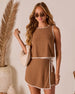 Sun-drenched days just met their match, meet the Howdy Sunshine Contrast Tank. This lightweight linen-style top brings the heat in all the right ways, with its textured feel, playful contrast trims, and breezy silhouette that says “cool girl summer” in a Southern drawl. Pair it with the matching Howdy Sunshine Contrast Wrap Tie Skort (sold separately) for a fresh take on Cowgirl cool.