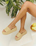 Let your vacation vibe shine wherever you wander especially when you’re wearing the Klein Raffia Platform Sandals. Wrapped in natural woven raffia, these slip-ons bring effortless texture and a touch of vacation-ready ease to every outfit. The platform sole adds just the right lift, giving you confident strides in a lightweight, breathable, and effortlessly stylish design.