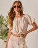 Sun’s out, style on, meet the Korien Short Sleeve Top. Made from breezy pleated linen crepe, this top features puff sleeves with elastic cuffs for that soft volume moment, and an adjustable drawstring hem finished with beaded ends for a playful, personalized fit. Pair it with denim for an easy daytime look or go full set mode with the matching Korien Pleated Wide Leg Pants (sold separately) for a vibe that says easy breezy summer, on your terms.