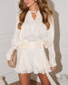 If you need an excuse to say yes to the invite, then the Lolitta Plissé Drop Waist Mini Dress is the answer. With its wavy sheen finish and shimmering plissé texture, this dress is designed to light up the room (and the dance floor). The split neckline with a sweet tie detail adds an effortless flirt, while padded shoulders give a subtle power boost. The tiered ruffle skirt flows with every step, creating that breezy, feminine energy that feels both elevated and playful.