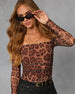 Leopard print walked into the chat, and she brought attitude. The Carmeline Mesh Leopard Print Top is your new statement piece for nights when you want to turn heads without saying a word. With ruched mesh fabric that hugs just right, a flattering square neckline, and semi-sheer sleeves that flirt from every angle, this top is equal parts fierce and feminine. It's the kind of piece that makes jeans feel runway-worthy and adds just enough edge under a blazer.