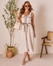 Vacation dressing just got an upgrade with the Westen Waist Tie Midi Shirt Dress. Made from midweight linen with contrast trims, this dress strikes the perfect balance between effortless and elevated. Front button closures and breast flap pockets add a touch of classic cool, while the detachable waist tie lets you customize your silhouette. Whether you're wandering cobblestone streets or catching sunset cocktails, this dress flows with relaxed sophistication and a fresh, chic vibe.