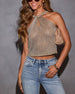 From cocktails to dancing, the Nerissa Metallic Knit Halter Top ensures you’re the center of attention because who says you can't be chic and a little daring. This metallic beauty adds just the right amount of glam to your girls' night out. The bust cut-out gives a playful touch, while the halter neck design keeps things sleek and sultry.