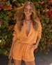 Easy, breezy, and beach-day ready, the Ocean Kissed Collared Button Down Top is just what you need this season. Made from soft, lightweight gauze fabric, this relaxed button-down features a curved shirttail hem, banded buttoned cuffs, and a front breast pocket for a hint of structure. Match it with the Ocean Kissed Cuffed Drawstring Shorts for effortless, sun-soaked style.