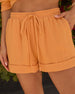 Meet your new sun-chasing staple, the Ocean Kissed Cuffed Drawstring Shorts. Made from soft, airy gauze fabric, these shorts are all about comfort without compromising style. The elastic drawstring waistband gives you that perfect, easy fit, while side slant pockets and a cuffed hem keep things polished and playful. Pair them with your go-to tank or complete the look with the matching Ocean Kissed Collared Button Down Top for a coastal-inspired set moment.