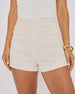 A little glam, a little boss, the Paige Tweed Pocketed Shorts is here to make your fall wardrobe anything but predictable. Designed in a luxe tweed fabric woven with subtle metallic threading, these shorts shimmer just enough to turn heads, day or night. The structured, non-stretch fit gives a polished silhouette, while fringe-trimmed faux pockets add a playful, fashion-girl twist.