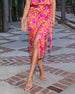 If you’re looking for your go-to for laid-back luxury with a dose of romance, the Seabound Wrap Floral Midi Skirt can be found. Made from smooth crepe satin fabric, this skirt drapes beautifully, moving with you in the most graceful way. The attached wrap tie closure adds a feminine touch, while the vibrant floral print brings all the vacation vibes. Pair it with the matching Seabound Printed Sleeveless Top (sold separately) for a coordinated, head-turning look.