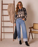 The Sevenah Cut Out Lace Top takes timeless textures and gives them a modern edge with contrast lace insets, delicate stitch detailing, and scalloped trims that feel soft but never shy. The crepe jersey fabric holds its shape while a back keyhole with loop button closure adds that perfect finishing touch. Perfect tucked into high-rise denim or styled with a sleek midi, it’s your new go-to for fall plans that start casual and end wherever the night takes you.