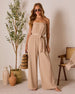 The Shaylin Strapless Waist Tie Jumpsuit is your one-and-done answer to chic summer dressing. Made from breezy crinkle crepe, it’s light, flowy, and perfect for everything from alfresco dinners to exploring sunlit streets. The elastic strapless neckline keeps things sleek and secure, while the detachable waist tie lets you switch up the vibe, cinched in or completely carefree.