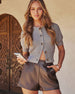From morning coffee runs to evening hangs, the Soft Launch Short Sleeve Cardigan is ready for your main character moment. Designed in a midweight ribbed knit, it hugs just right and adds texture to any outfit. Short sleeves keep things cool, while ribbed trims and front button closures give it a clean, effortless polish.