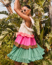 Bring the sunshine wherever you go in the Antari Tiered Color block Mini Dress. This playful, feel-good favorite is made from breezy crinkle crepe jersey that moves with you and keeps things light and effortless. The tiered ruffle design brings flirty volume and a dose of fun, while bold color blocking gives off major summer energy.