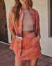 When the breeze hits just right and the leaves start their annual runway show, the Wild Stem Corduroy Jacket is your cue to layer up in style. With a timeless collared neckline and front slip pockets for casual cool-girl energy, this structured layer is your go-to for adding texture and polish to any look. The rigid corduroy fabric holds its shape while still keeping things effortlessly relaxed. Pair it with the matching Wild Stem Corduroy Mini Skirt, sold separately, but together? A total outfit crush.